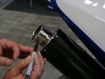 ![]() ![]() | Wrap the muffler with masking tape to protect the outer surface, then drill the 1/8" pilot hole using the provided drill bit. |