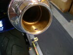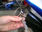 ![]() ![]() | Now drill the 17/64" finished hole size using the provded drill bit. Rotate the muffler back to the proper position and re-tighten the clamps. De-burr the hole with a fine half round file, drum sander in hand drill or dremel. |
