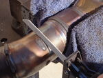 With the cut made use a 3/4" to 1" drill bit to drill a center hole in remaining cat. Be sure to stop when you feel it touch the divider plate in the collector, or drill a little at a time and keep an eye on it. | |