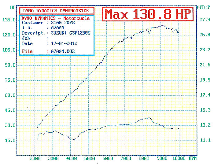 My Buddy Mark that purchased a unit also asked me to contact you We fitted the units last week that you had preset to Stage 2 together with the O2 bypass sensor, completed air box modification (bike already fitted with K&N) and removed secondary butterflies. Installation of the STP was straight forward since you provide the injector fittings, and it truly is a simple plug and play set up. I also have a Yoshi R77 slip on fitted. I took the bike out for a 80 mile run last Sunday and could not believe the difference in performance. My overriding sensation is the smoothness and responsiveness of power delivery. The bike definitely delivers more power and revs through to red line without any noticeable drop off in acceleration or performance, it just wants to keep going. It really has made a huge difference to the bike and a mod that l am really pleased with.