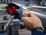 Apply double sided foam to blinker as shown. Cut about 16" of 18 gauge wire and slightly bend the end as shown. | |