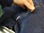 Using a good light, fish the wire forward until you can reach it with needle nose pliers as shown. | |