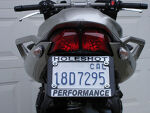 Neatly route the blinkers wires as shown and plug back into the bike harness. Install the left hand blinker using these same steps. Install your license plate and frame, adjust up and down to your liking then snug down. | |