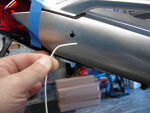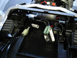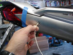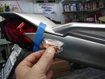 Neatly tape the 18 gauge wire to both blinker wires and fish through holes as shown. This little trick allows you to leave the tail section totally assembled and route the wires to the plugs. | |