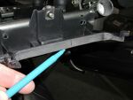 This shows the new taillight mounting point. You will drill a 13/64" hole in this cavity on the left and right side of the taillight base. Be sure the taillight is centered right to left before drilling though the front plastic panel mounting point. | |