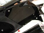 This is the bottom view of the Holeshot fender eliminator trays mounting location. Be sure The front corners just clear black plastic pop in buttons that mount the tail section in place. Once properly positioned mark your mounting holes then drill using a 1/4" bit. Mount up as shown using provided hardware per the instruction sheet. | |