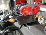 Mounted Holeshot rear fender eliminator tray, taillight and rear blinkers. | |