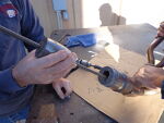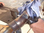 Using a reciprocating cutting saw with good blade, cut header tube just in front of weld bead as shown. Stainless steel is tough so have 3 or 4 blades handy for this step. | |