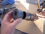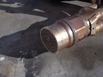 With the cut made use a 3/4" to 1" drill bit to drill a center hole in remaining cat. Be sure to stop when you feel it touch the divider plate in the collector, or drill a little at a time and keep an eye on it. | |