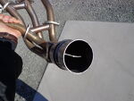 This is what it will look like with the cat removed from the collector. Now sand and de-burr the cut edge cleanly, then reinstall the header back on the bike. New exhaust gaskets are always recommended. This step is now completed, for the rest of the exhaust installation refer to the 4-1 slip-on install sheet that came with the kit. | |