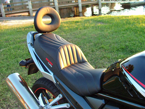 I must add I was a bit hesitant about ordering from such a long distance, but your comments about fitment etc put my mind at rest. I would also like to say what a nice bit of kit, looks every bit as good on my 650 K7 Bandit as it does on the web site. No need to worry about it fitting the 650 Bandit, straight on no mods necessary not even to the adjustable brackets. Not done many miles but already like the "planted" feel to the seat and the feeling of all round support. Once again thanks for your advice and excellent service.