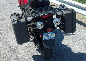 The Suzuki V Strom is a grate turing bike, but my wife hve been asking for arms after se saw a Honda Gold wing. I have been looking for arms on the tail box for over a year. Now my wifeis happy with the Suzuki and dosn´t mention the Honda Goldwing any more.
