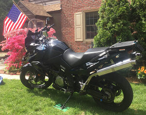 I’ve been riding a Hayabusa since summer of 1999. I liked the busa because it rides like it’s on rails, goes exactly where you look, and it has nice low end grunt to compliment the high end responsiveness. But, the roads have become terrible here in upstate New York over the past five years, due to major cutbacks in highway maintenance. Road surfaces have become rough & potholed, and the Busa at speed was quite a pounding on these poorly maintained roads. I retired at the end of 2011 at 62 years old, and decided to get something with long travel suspension to make riding on the back roads fun again – so I bought the new V-Strom in June of 2012.