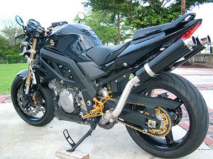 Hi,I just completed converting an 05SV1K S to my version of an N and finished it off with a set of high mounts. Out of the box I was pleasantly surprised at the quality, then was really happy that the installation was so easy. No struggles what so ever. Then, the real pleasure was standing back and admiring their look. I lied....it was quadruple pleasure firing her up and listening to those cans. All I can say is, wow! Every time I fire her up now, it makes me so happy I made the right choice. Hey Dale I have a update for you http://forum.svrider.com/ http://forum.svrider.com/showthread.php?t=146865 Cheers, Carl Acevedo(Florida)