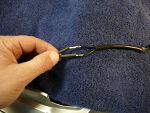 Using a good light, fish the wire forward until you can reach it with needle nose pliers as shown. | |