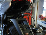 This shows the fender being removed and how the 8mm stainless button head allen bolts are to be installed in the Holeshot fender eliminator tray. | |